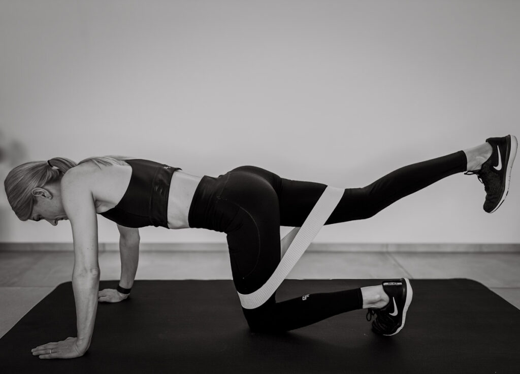 Wir trainieren überwiegend mit Bodyweight-Übungen und kleinen, gezielten Tools wie Bändern oder einer Matte.